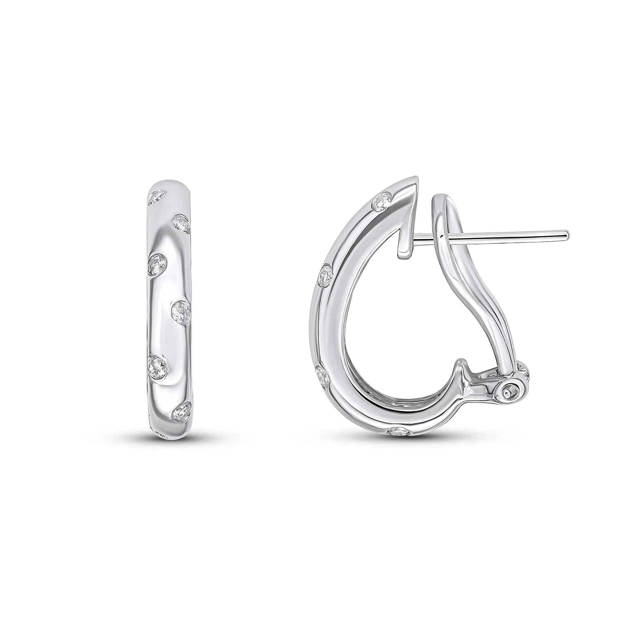 Diamond Flush Set Oval Half Hoop Earrings made 18ct White Gold