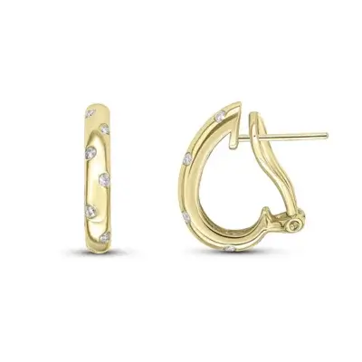 Diamond Flush Set Oval Half Hoop Earrings made 18ct Yellow Gold
