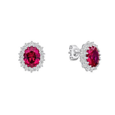 Diamonfire Red Oval Cubic Zirconia Stud Earrings with Halo
