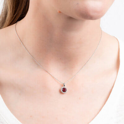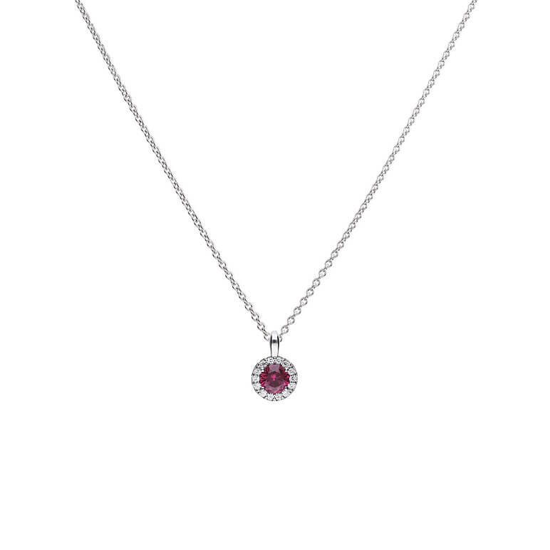 This beautiful ruby red zirconia solitare necklace adds elegance to any outfit and will be a perfect fit to complete any jewellery collection. Featuring Diamonfire cubic zirconia stones which are each cut and polished to mirror the brilliance of a genuine diamond. The product also is made from sterling silver with a triple plated finish of palladium, platinum and rhodium for an almost life-long tarnish protection.