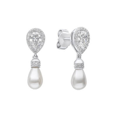 Diamonfire Teardrop Zirconia & Shell Pearl Drop Earrings