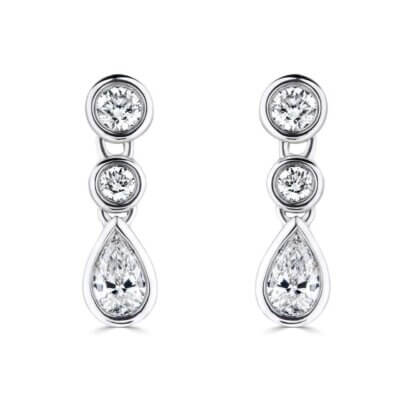 Drop Earrings with Round and Pear Shaped Diamonds set in 18ct White Gold