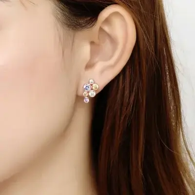 Fei Liu Bubble Stud Earrings in Rose Multi-Colour Cubic Zirconia BUB-925P-201-CZ00