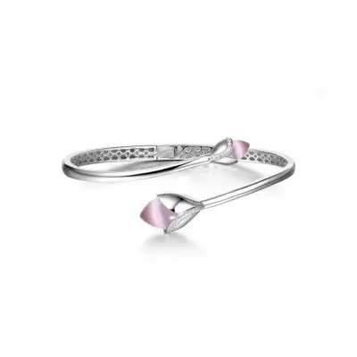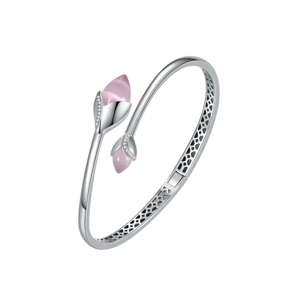 Fei Liu Magnolia Bangle in Silver Cubic Zirconia Pink MAG-925R-401-CEPK