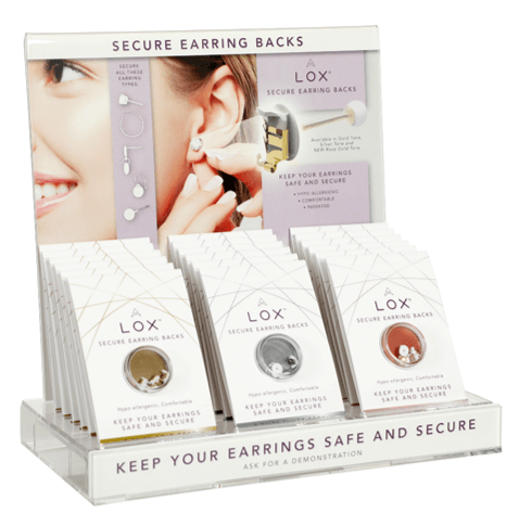 Now you can protect all of your earrings with our unique locking earring backs. Comfortable, hypo-allergenic and easy to use. You can trust our Lox to keep your precious earrings safe and secure forever.
