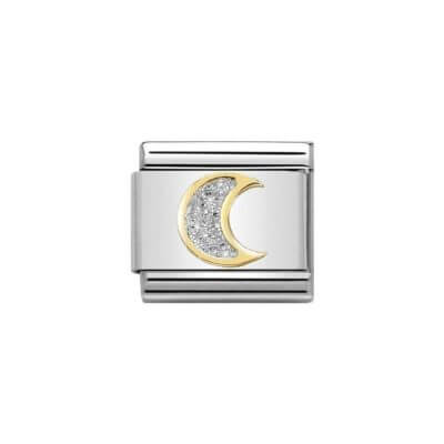 Nomination Gold with Silver Glitter Moon Charm