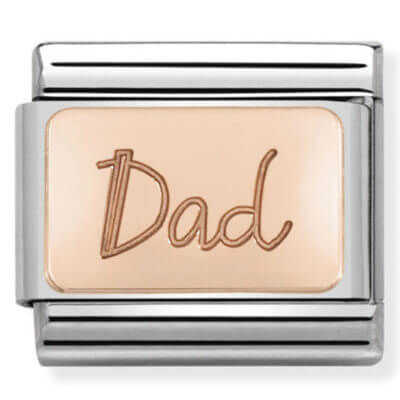 Original Charm for Nomination’s Composable Classic bracelet in stainless steel and 9K rose gold with “Dad” engraved. Made in Italy. The new Composable line celebrates the most important people in your life!