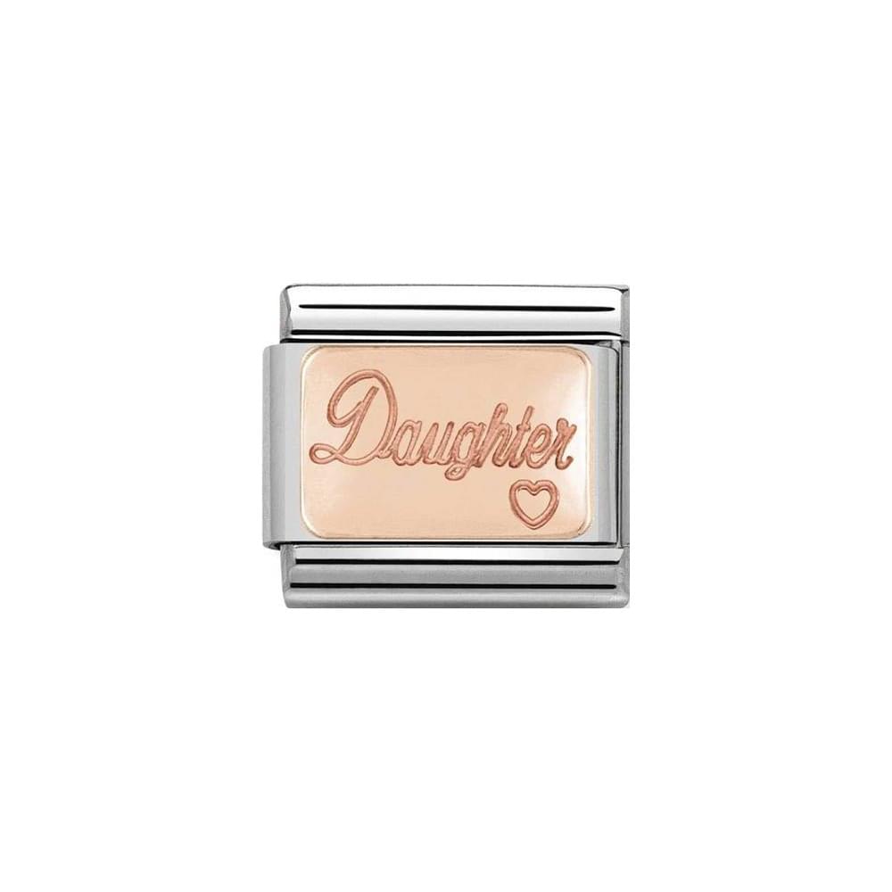 Nomination classic stainless steel link with 9ct rose gold plate, Daughter and heart.