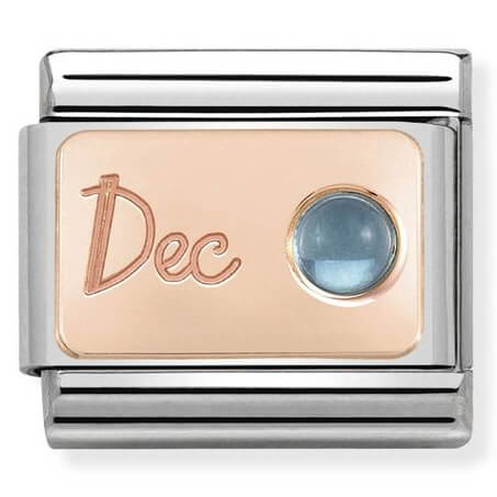 Give an original Charm for the Classic Composable bracelet in stainless steel, 9K rose gold and light blue Topaz to someone born in December. An original gift that’s entirely Made in Italy.