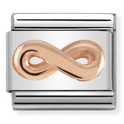 Charm in stainless steel for the Original Composable Classic bracelet with Infinity symbol in 9K rose gold. Made in Italy. For a true believer of everlasting love!