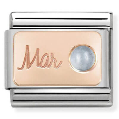 Give an original Charm for the Classic Composable bracelet in stainless steel, 9K rose gold and light blue Aquamarine to someone born in March. An original gift that’s entirely Made in Italy.