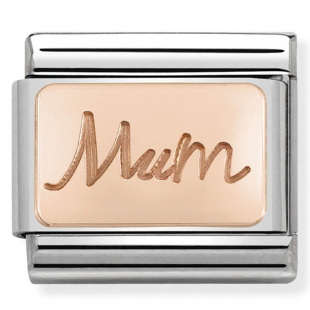 Original Charm for Nomination’s Composable Classic bracelet in stainless steel and 9K rose gold with “Mum” engraved. Made in Italy. Mum, the person who knows you the most and gives the best advice!