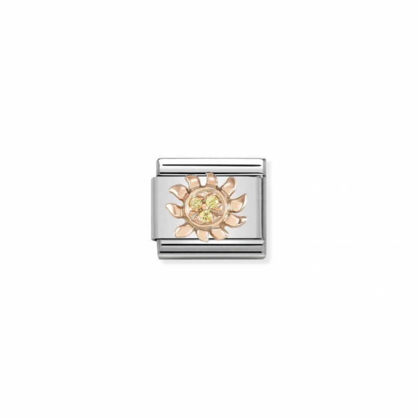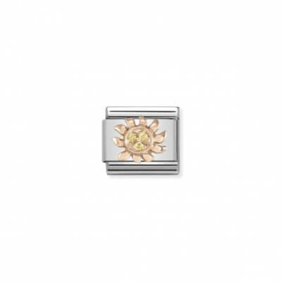 Original link for bracelet with Sun with Yellow Cubic Zirconia symbol in 9K rose gold. Made in Italy. The perfect link for those who always see the sunny side of life.