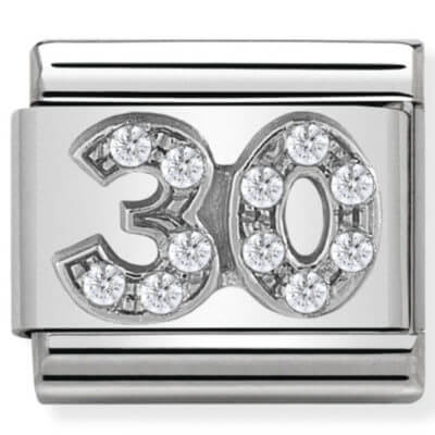 Original Charm for Nomination’s Composable Classic bracelet in stainless steel with the Number 30 in sterling silver and white Swarovski Zirconia. Made in Italy. Wish a good friend the very best on their 30th birthday with this special Charm!
