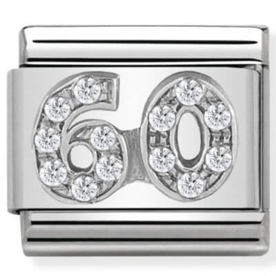Original Charm for Nomination’s Composable Classic bracelet in stainless steel with the Number 60 in sterling silver and white Swarovski Zirconia. Made in Italy. Say it with Composable: “Happy Birthday to you!”