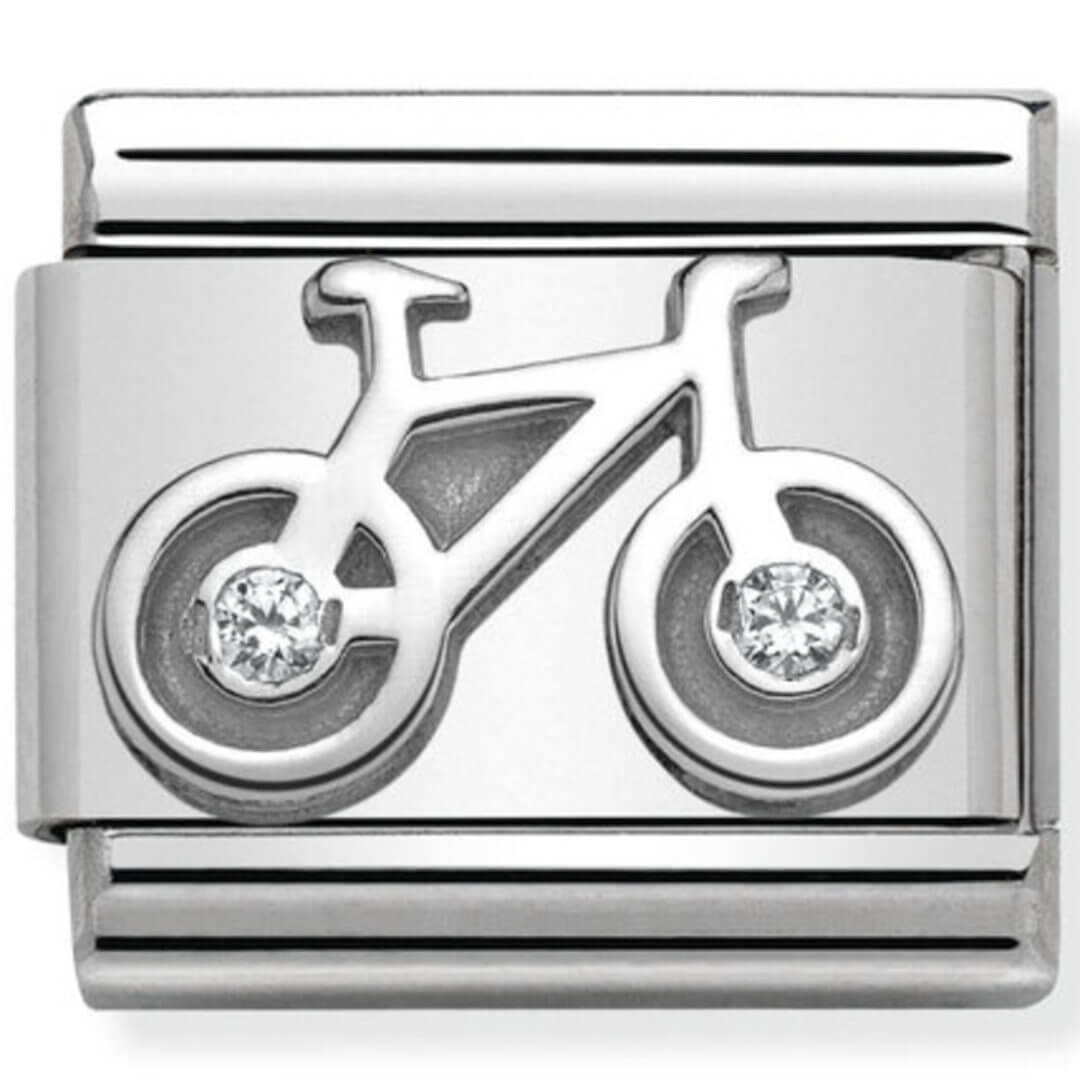 Stainless steel Original Nomination Classic Charm for Composable Bracelet with Bicycle symbol in sterling silver and Cubic Zirconia. Made in Italy. Add your passions to your bracelet.