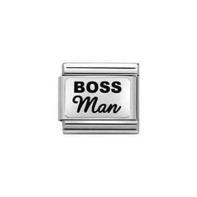 Charm for the original Composable Classic bracelet in stainless steel with ”Boss Man” in sterling silver and enamel. Made in Italy. For the man who stole your heart. #oneformeoneforyou