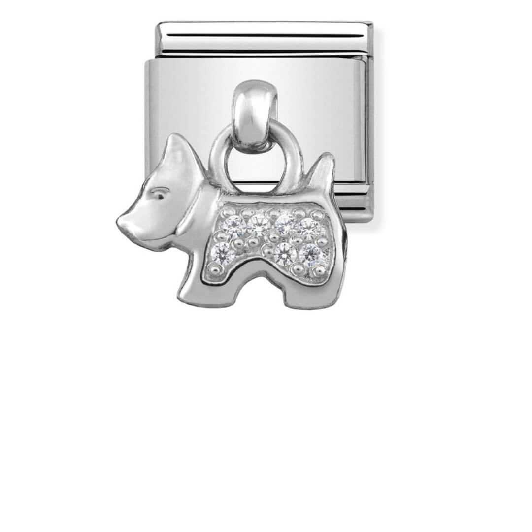 Classic Charm for Original Composable Bracelet with Dog pendant in stainless steel, sterling silver and Cubic Zirconia. Made in Italy. Reveal your love for your pets!