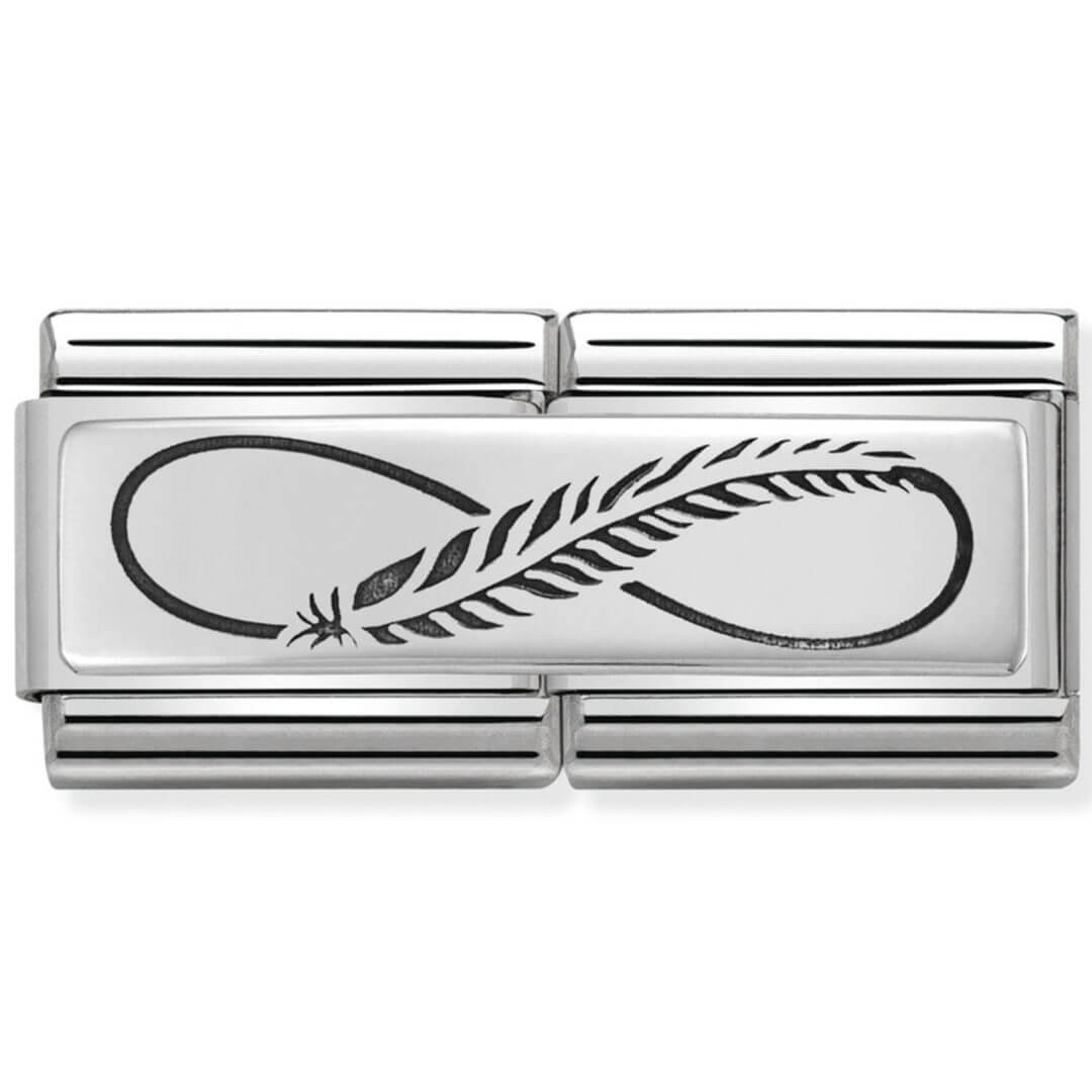 Original Charm for Nomination’s Composable Classic bracelet in stainless steel and sterling silver with the Infinity symbol and a Feather in black enamel. Made in Italy. Effortlessly falling in love…