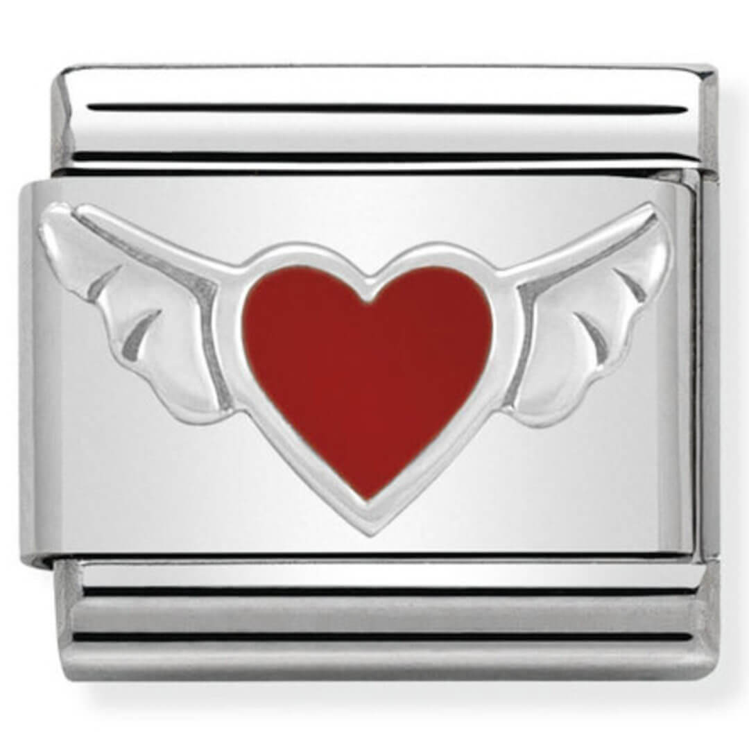 Classic Charm for Original Composable Bracelet with Heart with Wings symbol in sterling silver, stainless steel and red enamel. Also available in other Heart symbols. Made in Italy. The perfect gift for Valentine’s Day.