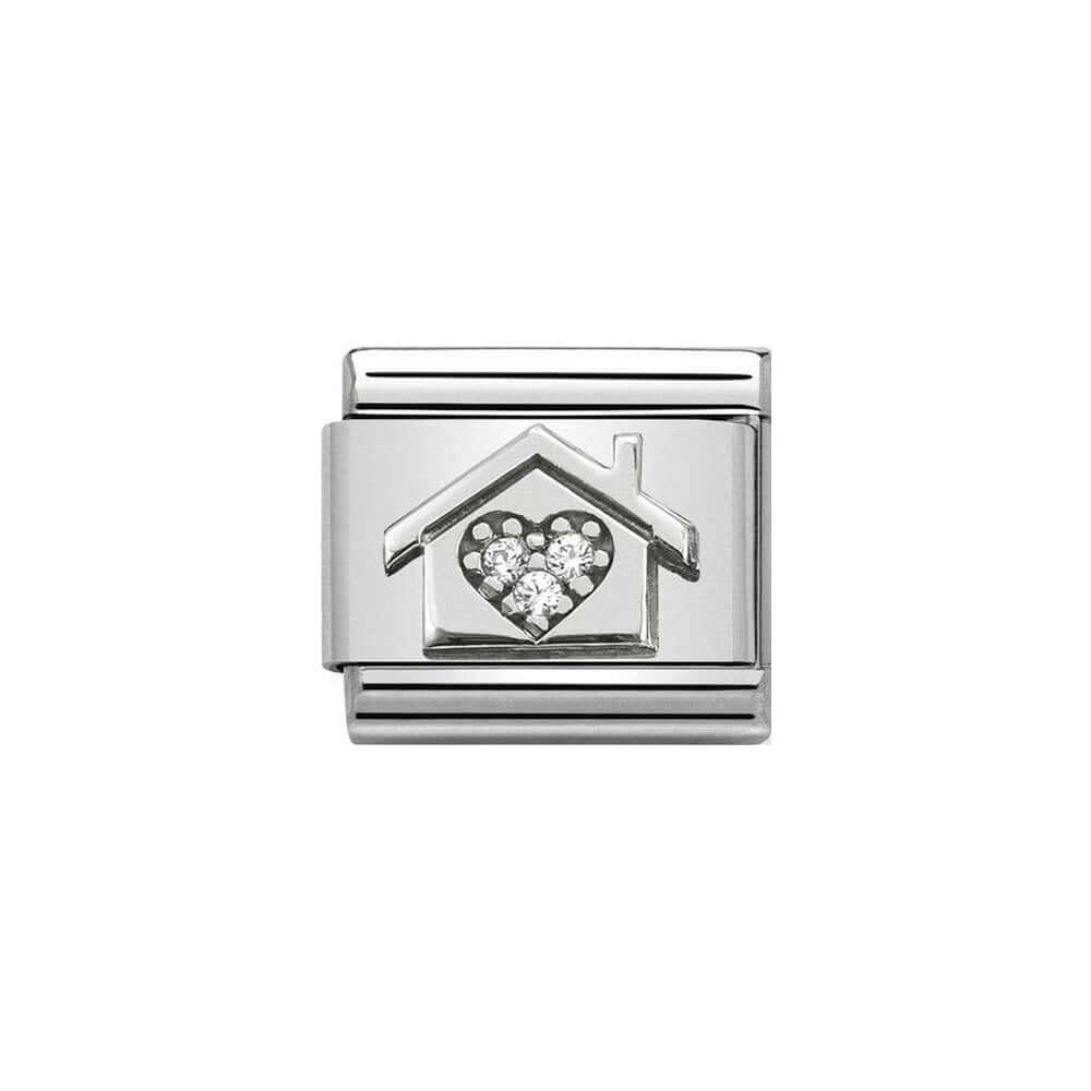 Original Nomination Link for Composable Classic Bracelets in Stainless steel and oxidised Sterling silver with House symbol and white Cubic Zirconia heart. Made in Italy. This Link is perfect for those who think that there is no place like home to feel safe and loved..