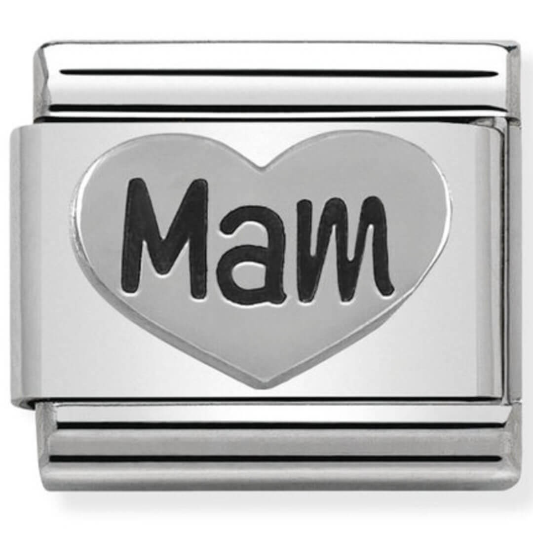 Charm for Original Classic Composable Bracelet in stainless steel and sterling silver with Mam writing. Charm from the My-Family Composable Collection. Available also in a “MUM” version. Made in Italy. Mother’s Day is every day. Make her smile!