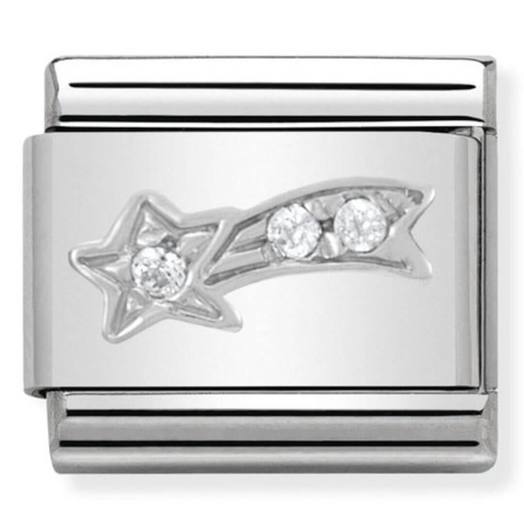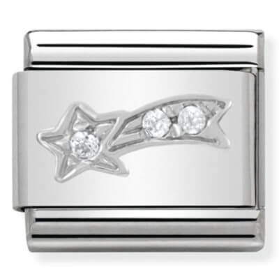 Classic Charm for Original Composable Bracelet with white Comet symbol in stainless steel, sterling silver, enamel and Cubic Zirconia. Made in Italy. The perfect birthday gift.