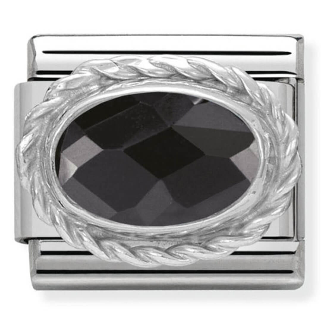 Original Charm for Nomination’s Classic Composable Bracelet in stainless steel, black Cubic Zirconia and twisted sterling silver detail. Available in several colours. Made in Italy. The perfect Charm for adding a touch of class to any look.