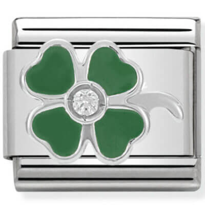 Nomination Silver Green Four-Leaf CLover