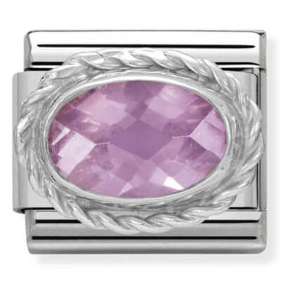 Original Charm for Nomination’s Classic Composable Bracelet in stainless steel, pink Cubic Zirconia and twisted sterling silver detail. Available in several colours. Made in Italy. The perfect Charm for adding a touch of class to any look.