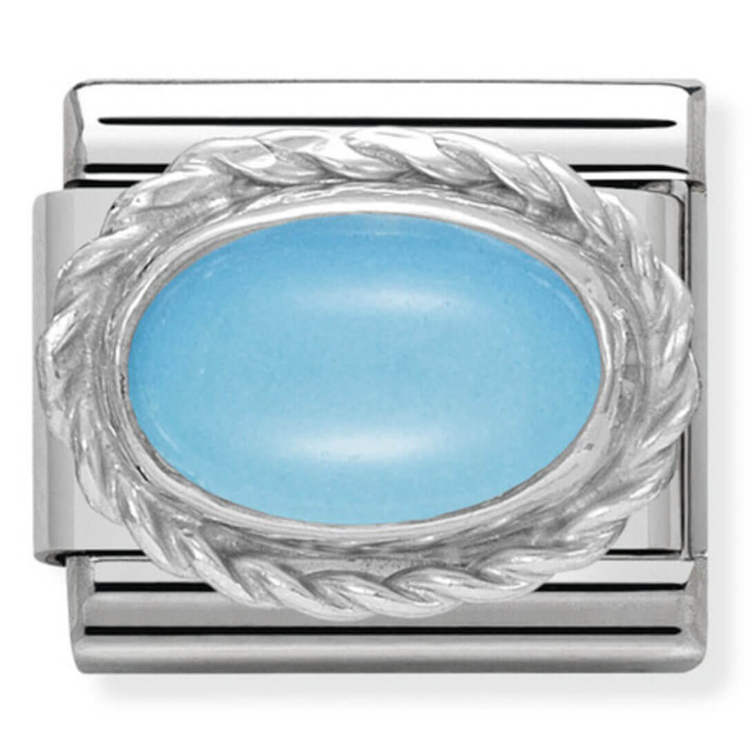Classic Charm for Original Composable Bracelet in stainless steel, sterling silver and turquoise. Also available in other coloured stones, oval in shape. Made in Italy.