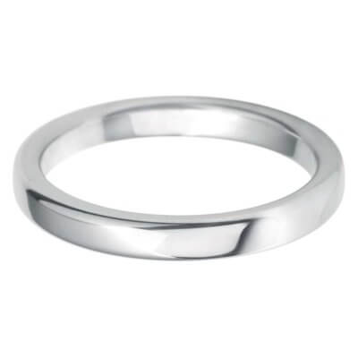 The Rounded Flat wedding band has a low rounded top and inside with rounded edge. Available in widths ranging from 2.5mm to 6.0mm, with a choice of light (Classic) and medium (Luxury) band weights.