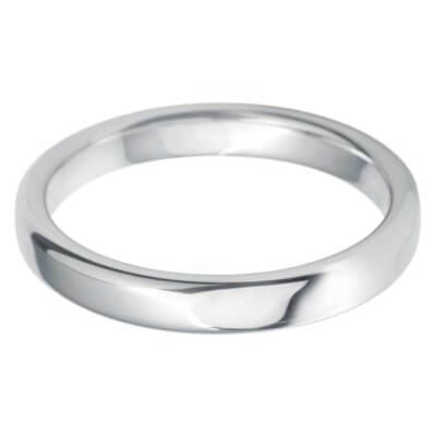 The Rounded Flat wedding band has a low rounded top and inside with rounded edge. Available in widths ranging from 2.5mm to 6.0mm, with a choice of light (Classic) and medium (Luxury) band weights.