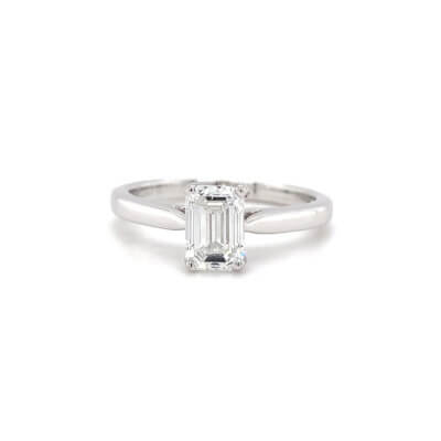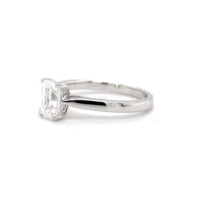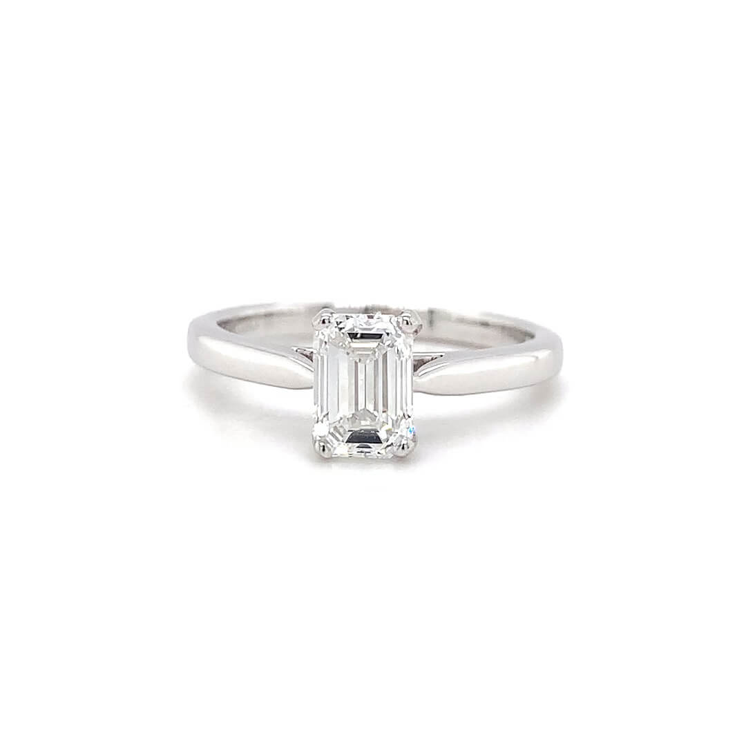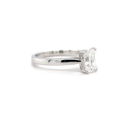 Pre-Owned 1.01ct Emerald cut Diamond Classic Engagement ring set in 18ct White Gold