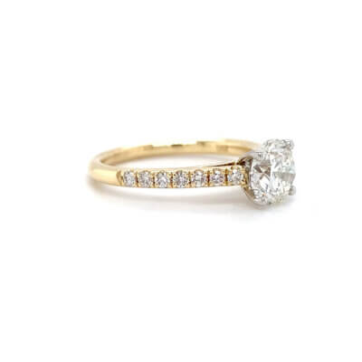 Pre-Owned 1.22ct Round Brilliant cut Diamond Engagement ring with Diamond set shoulders made in 18ct Gold