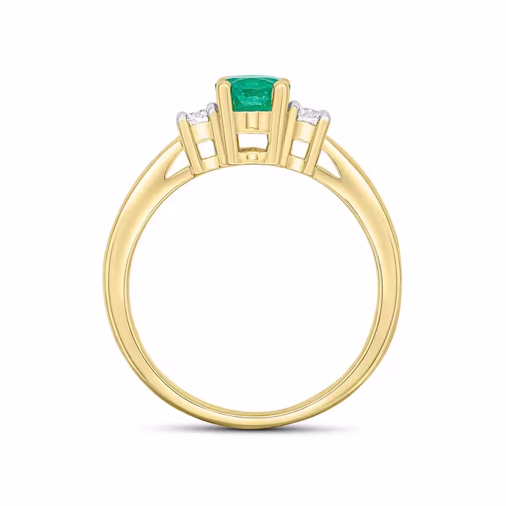 9CT Yellow Gold Oval Emerald & Diamond Claw Three Stone Ring 7x5mm