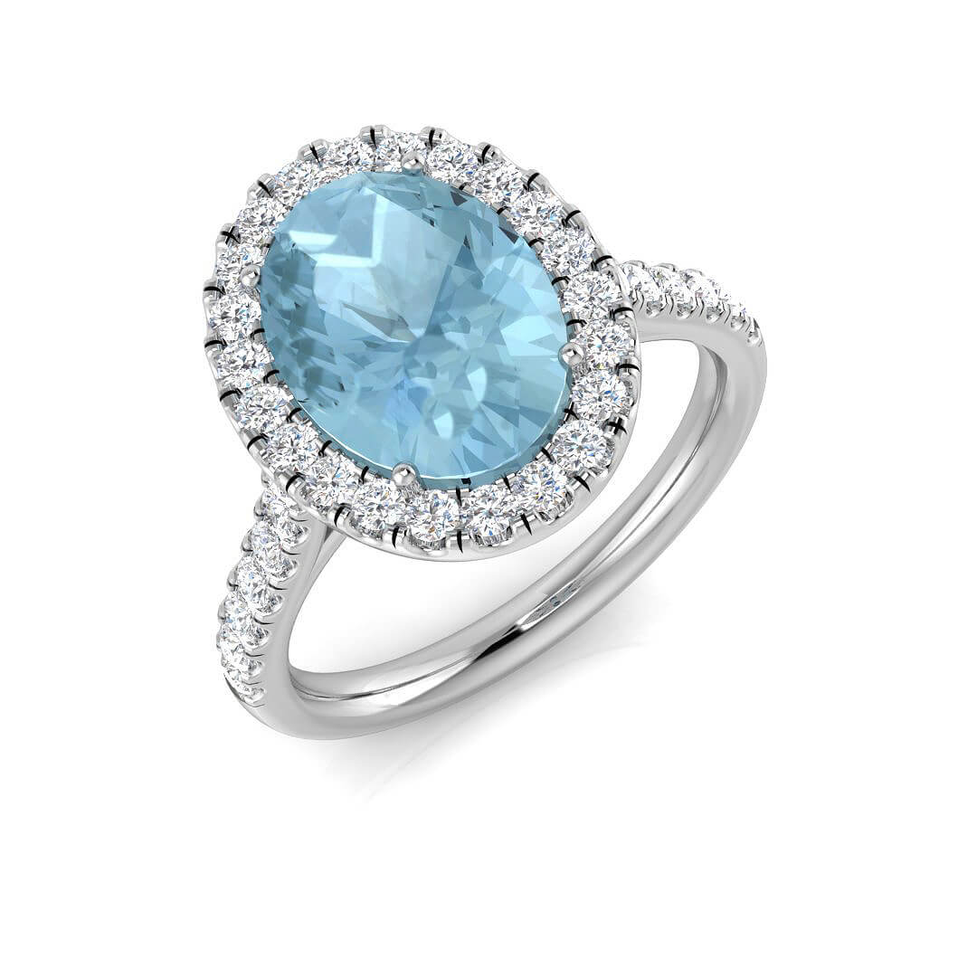 Pre-Owned Aquamarine and Diamond Halo ring made in Platinum