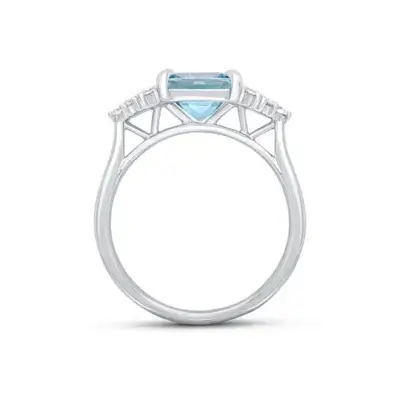 18CT White Gold Claw Set Cushion Aquamarine & Diamond Trefoil Ring 8mm