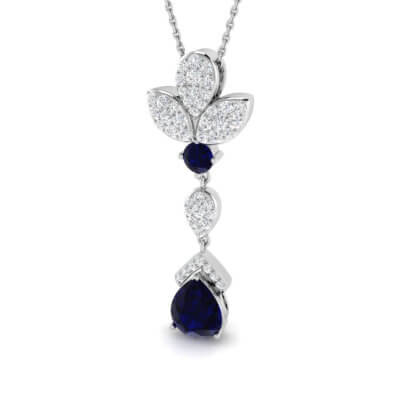 Pre-Owned Blue Sapphire and Diamond Drop Pendant made in 18ct White Gold