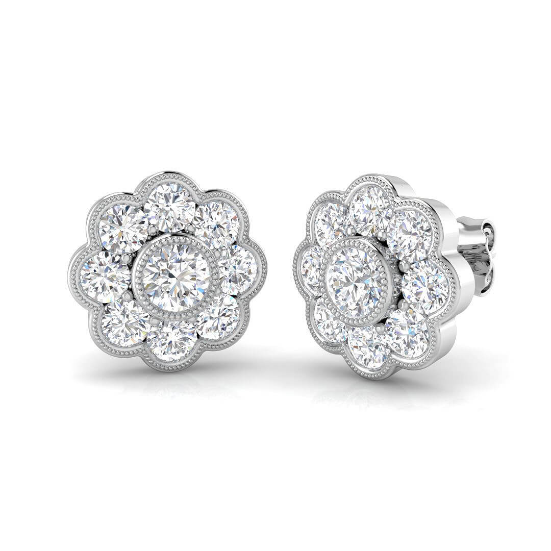Pre-Owned Diamond Cluster Earrings made in 18ct White Gold