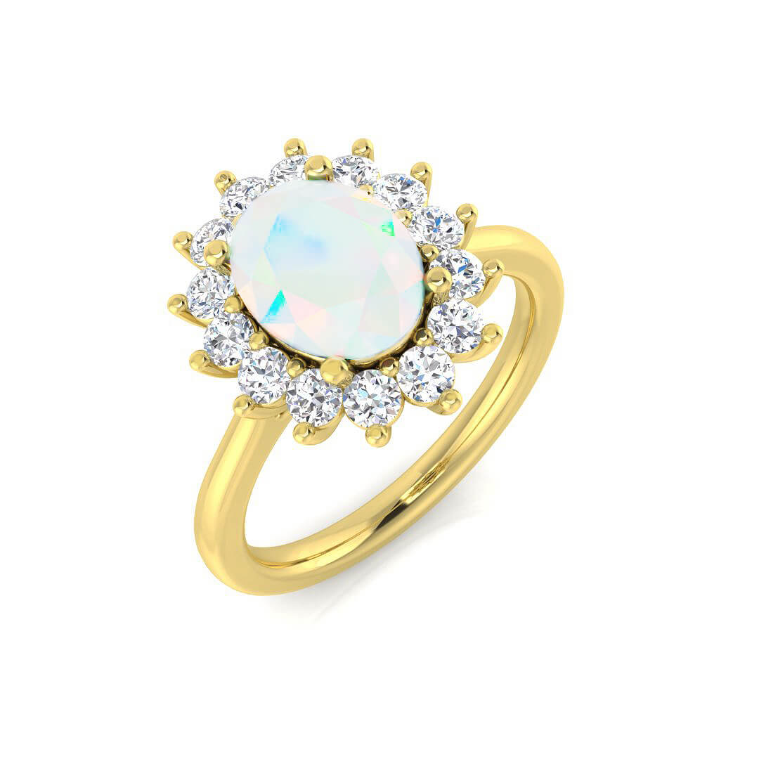Pre-Owned Oval Opal and Diamond cluster ring made in 9ct Yellow Gold