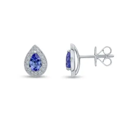 Pre-Owned Pear Shaped Tanzanite and Round Diamond Cluster Stud Earrings made in 18ct White Gold