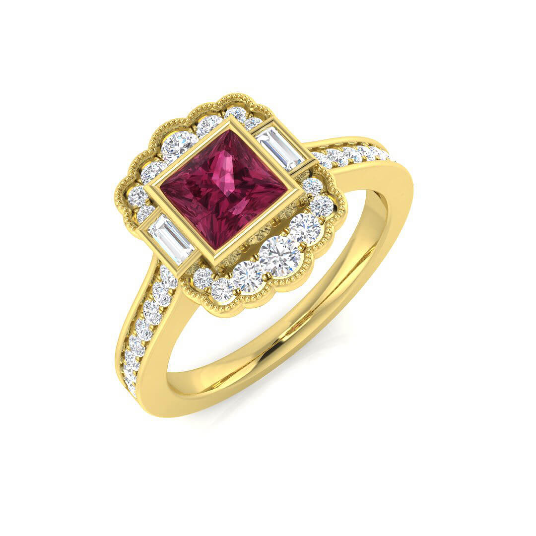 Pre-Owned Pink Tourmaline Diamond ring in an Art Deco style