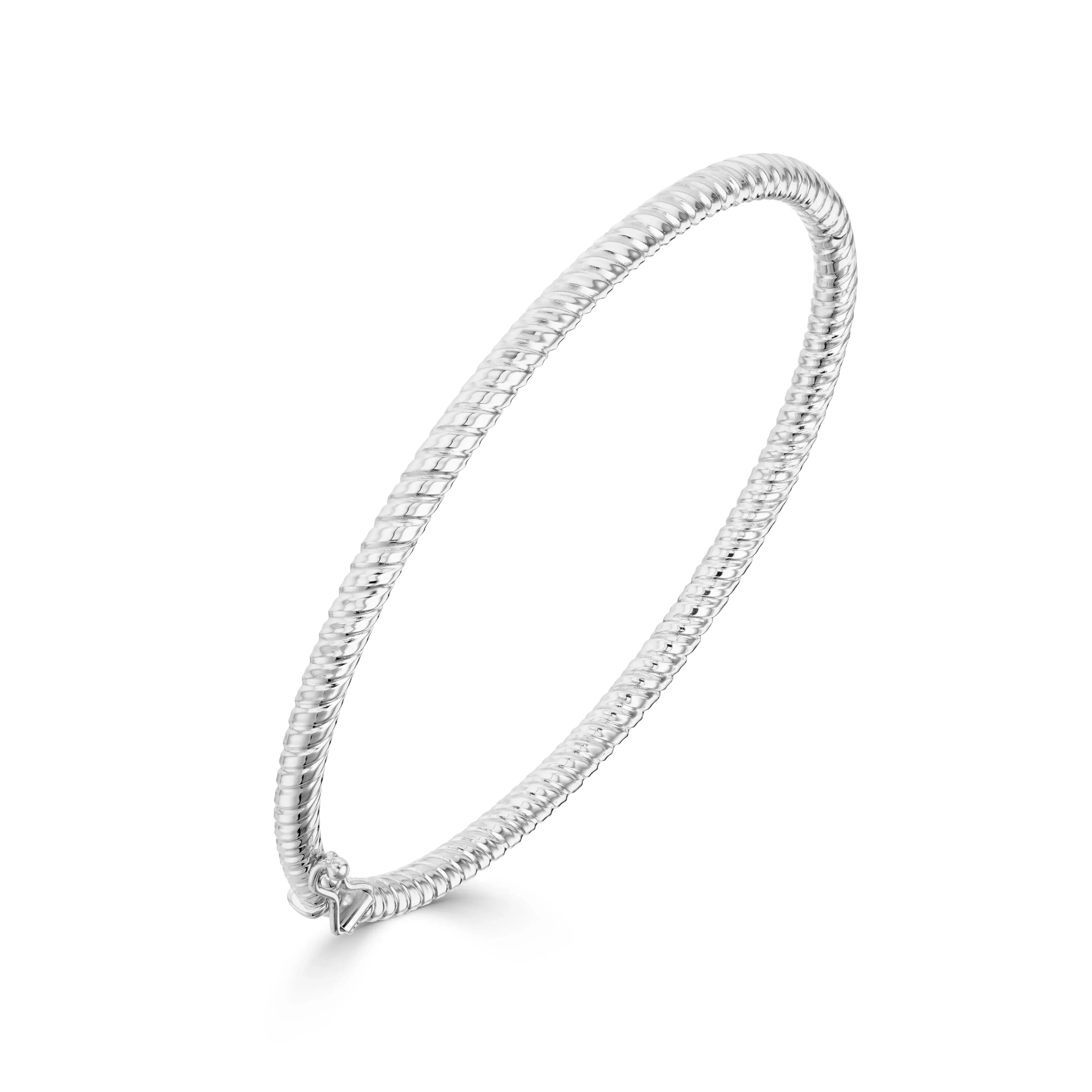 Round Twist Solid Bangle with Hinge made in 9ct White Gold
