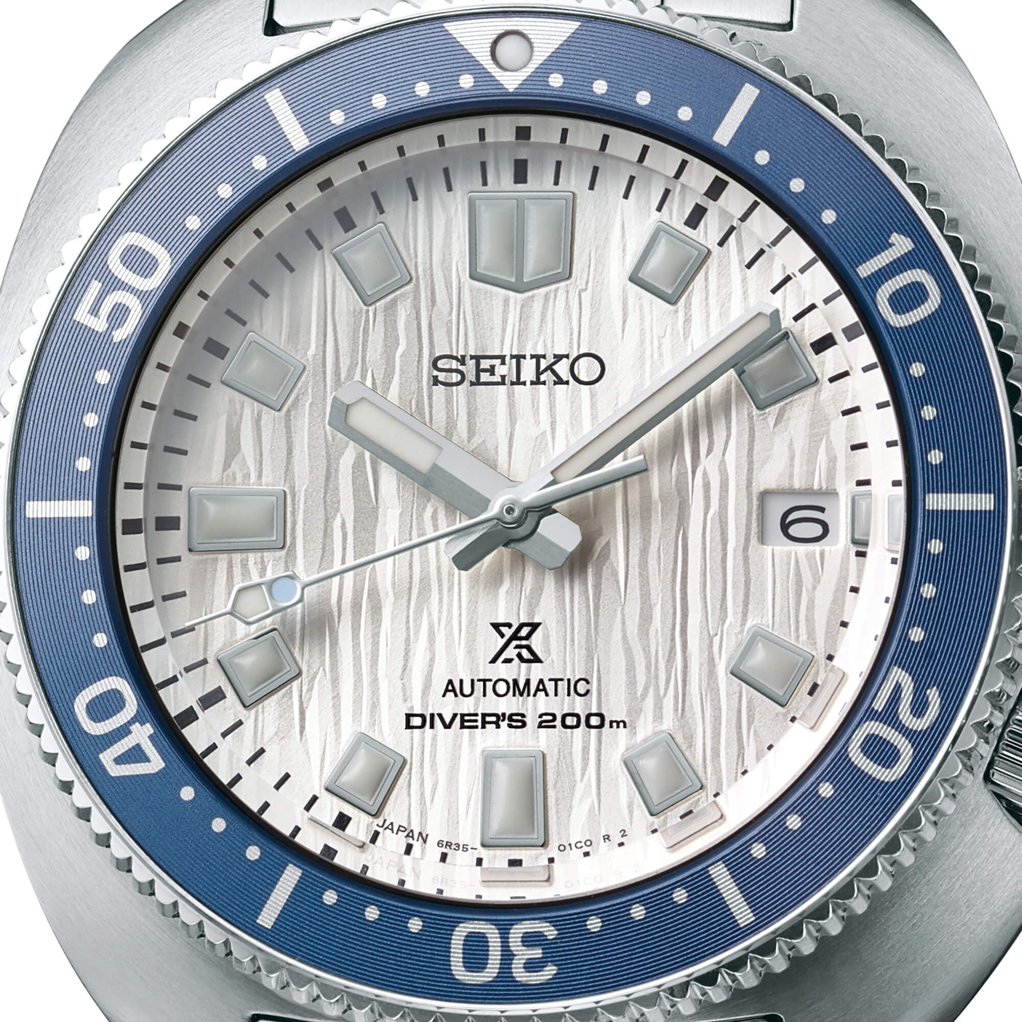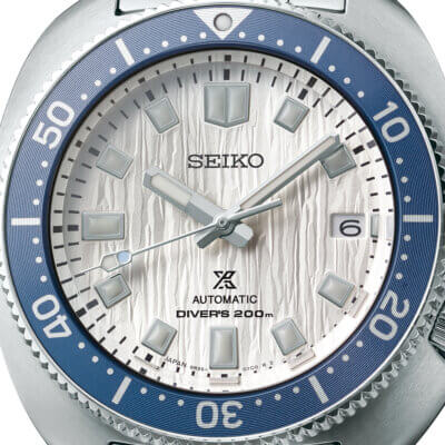 This specific design is inspired by Seiko’s 1970 Diver’s 150m watch – worn by Japanese explorer Naomi Uemura from 1974 to 1976 during his solo dog sled from Greenland to Alaska, a journey of 12,500km.
