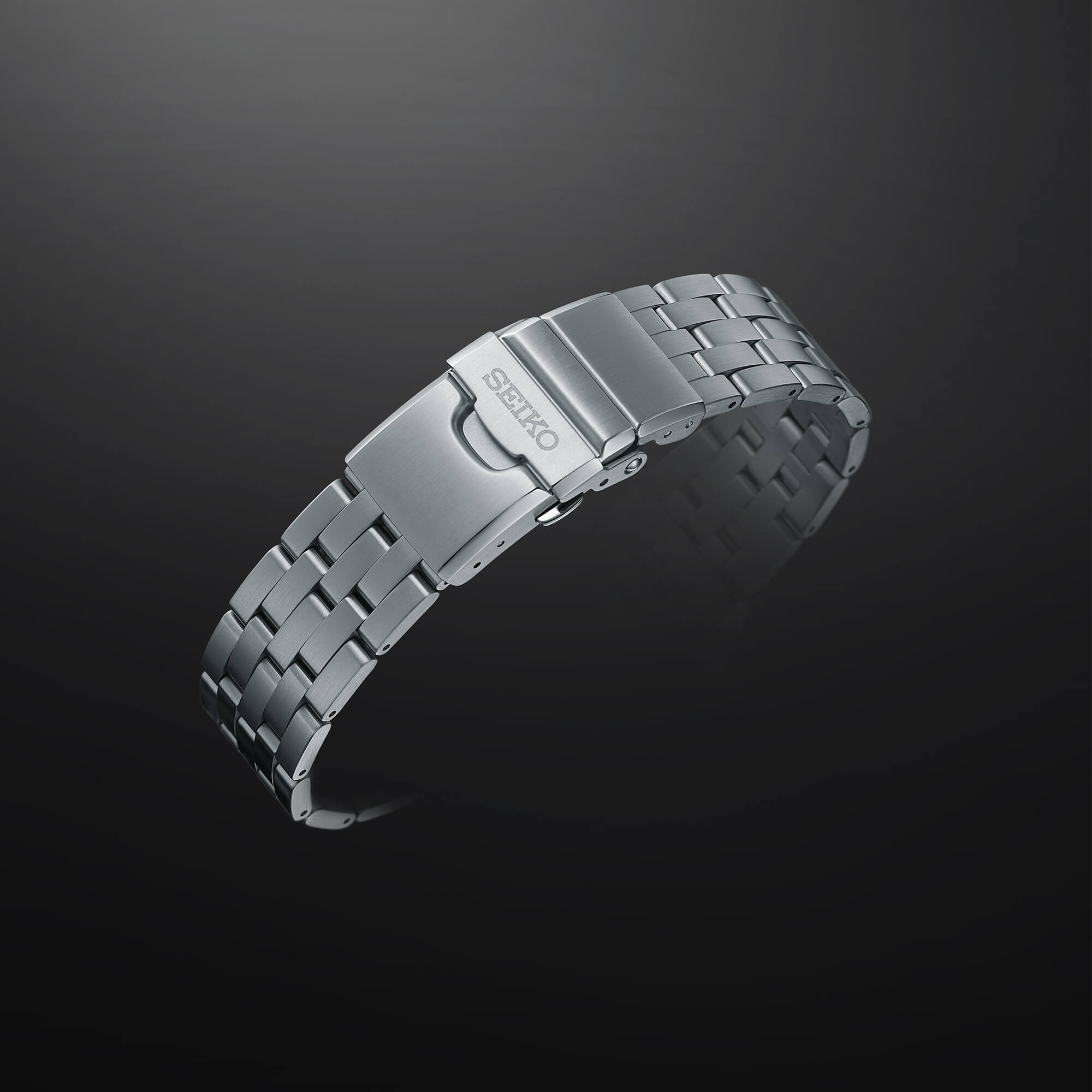 This design is a modern interpretation of the original 1968 Turtle, featuring an elegant but sporty 5-row bracelet with newly developed compact clasps to match the slim case, while the date window is positioned for legibility, without interference with the indices.