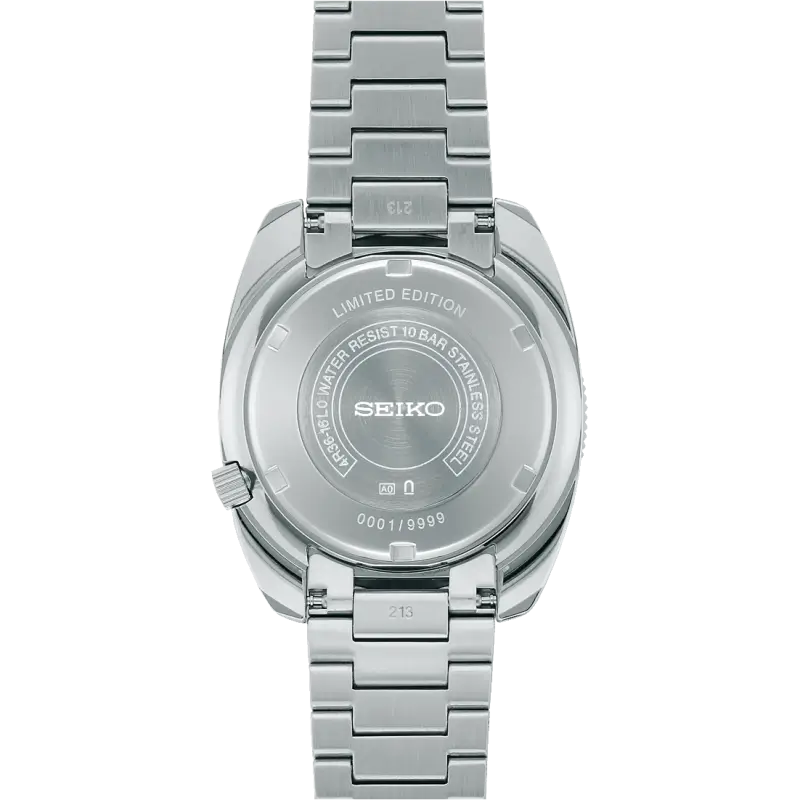 In the ‘Pepper’ black colour popularised by the original, under its curved glass, it maintains the same vintage aesthetic. The case shape and size has been recreated as accurately as possible, but with improved lugs and crown for functionality. The bracelet has solid links to resemble the original’s retro appearance whilst it also comes with a ‘68 style calf leather strap. Powered by an in-house 4R36 automatic movement, this Seiko 5 Sports has a power reserve of 40 hours.