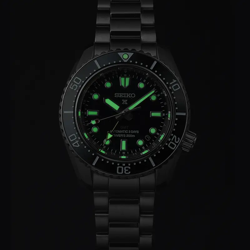 This modern watch is powered by the new in-house Calibre 6R54 and is the first of Seiko’s diving watches with mechanical GMT functionality. Built for wearability: the bracelet fits comfortably due to its low centre of gravity and short-pitch – and durability: with a three-day power reserve and high-quality scratch resistant Japanese ceramic Diving scale, its water resistance is up to 200m.