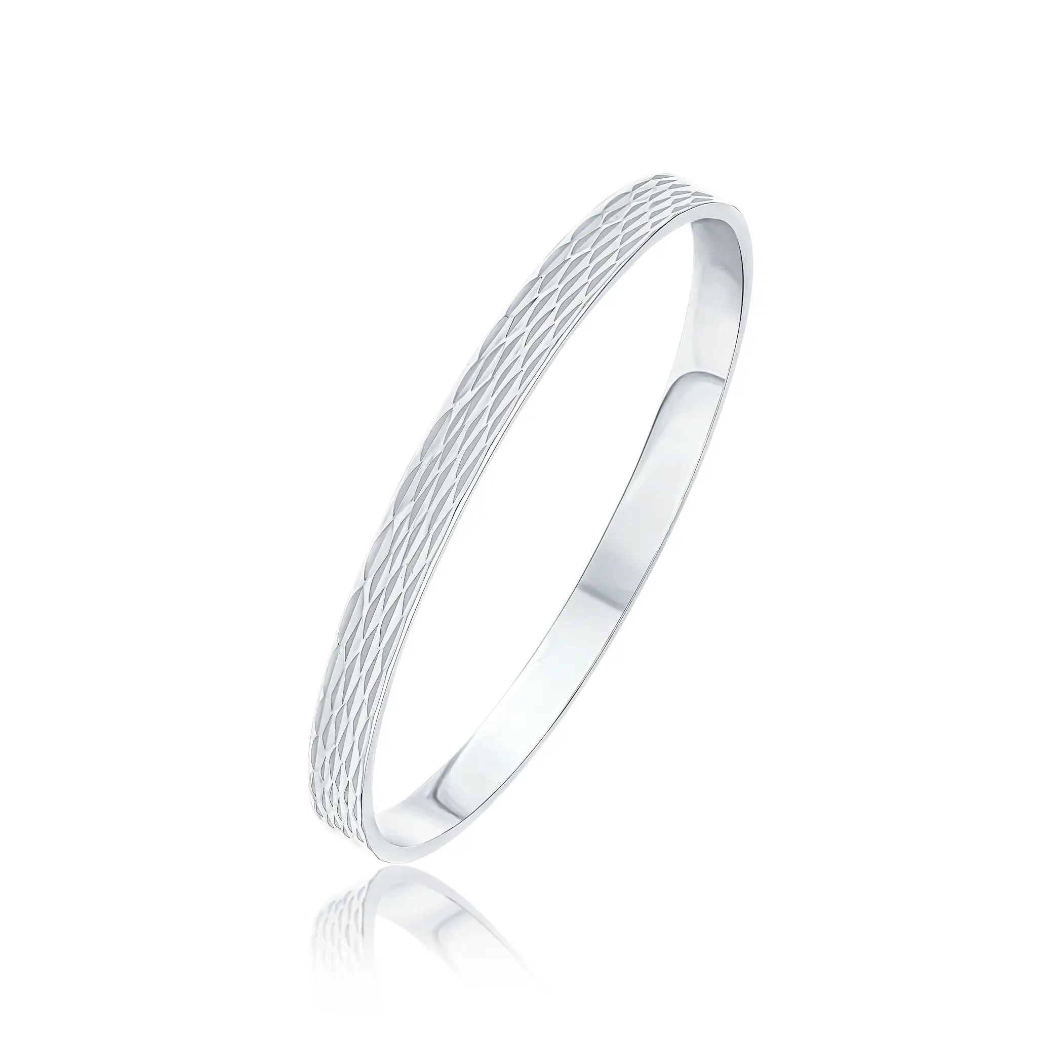 Silver 6mm Flat Bangle with Diamond Cut Marquise Pattern