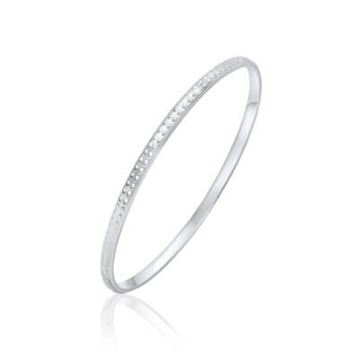 Sterling Silver 3mm Round Court Bangle With Oval Beaded Design